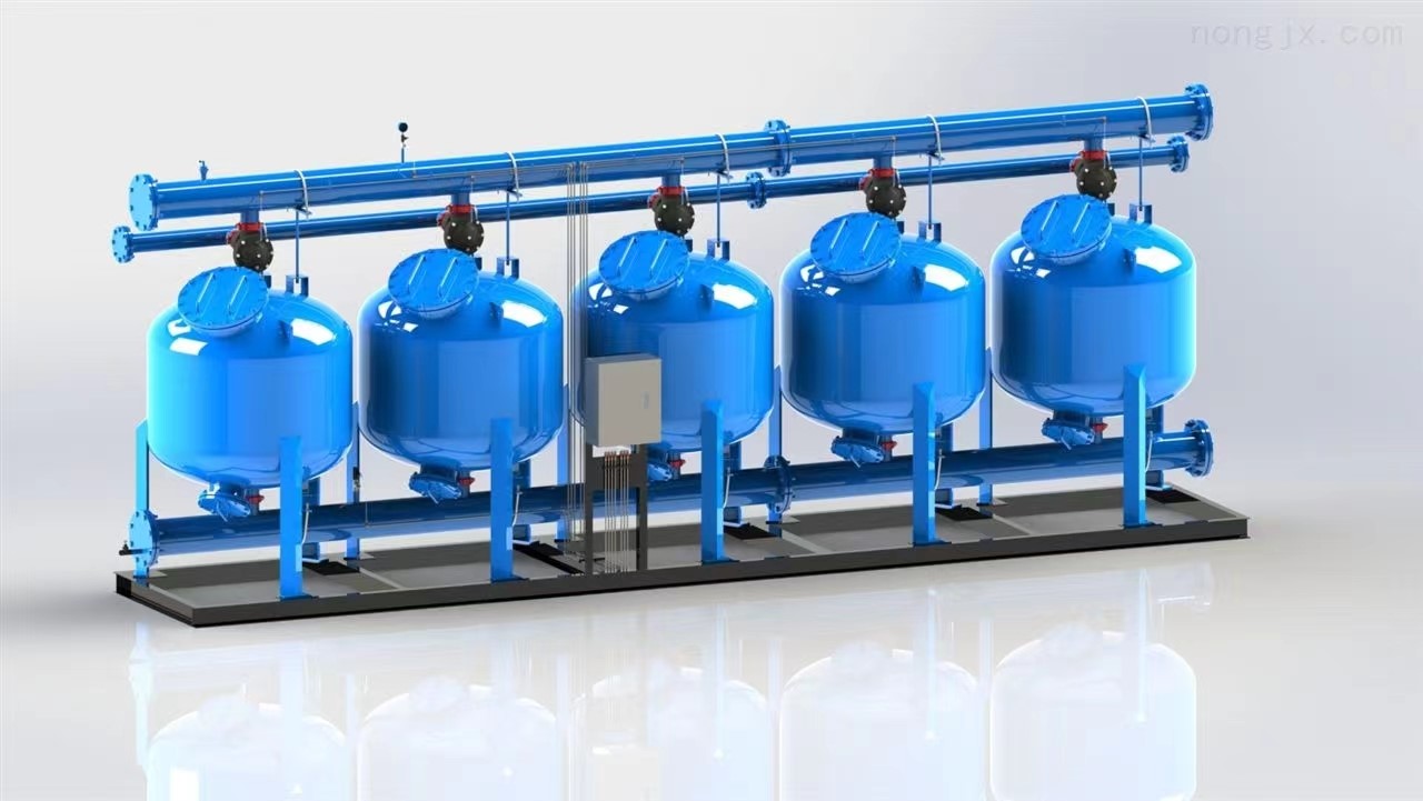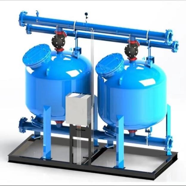 多罐組合,實現(xiàn)大水量、高濾速過濾,自壓反洗,根據(jù)壓差和時間控制,依次反洗