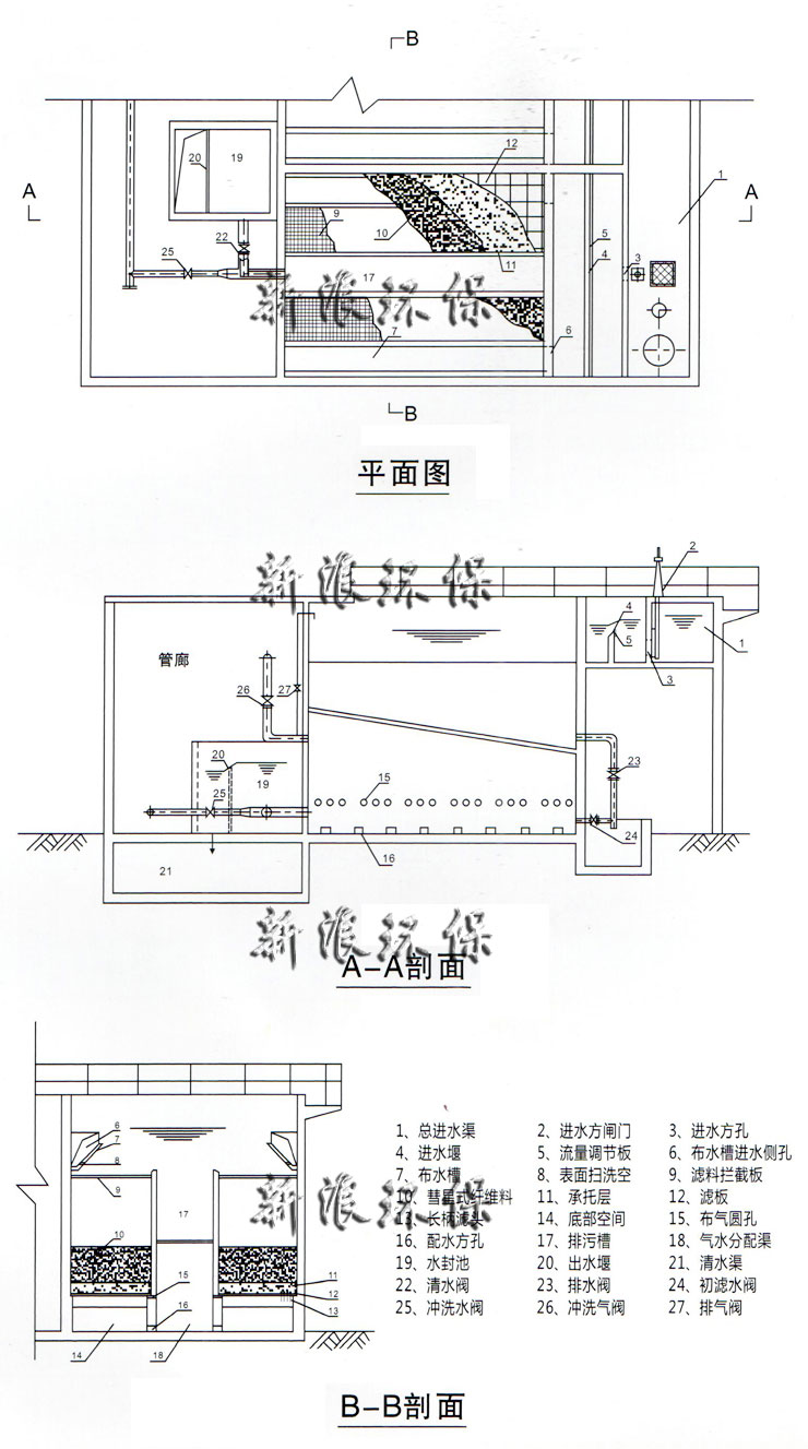 單獨(dú)氣洗強(qiáng)度:28~32L/s·㎡